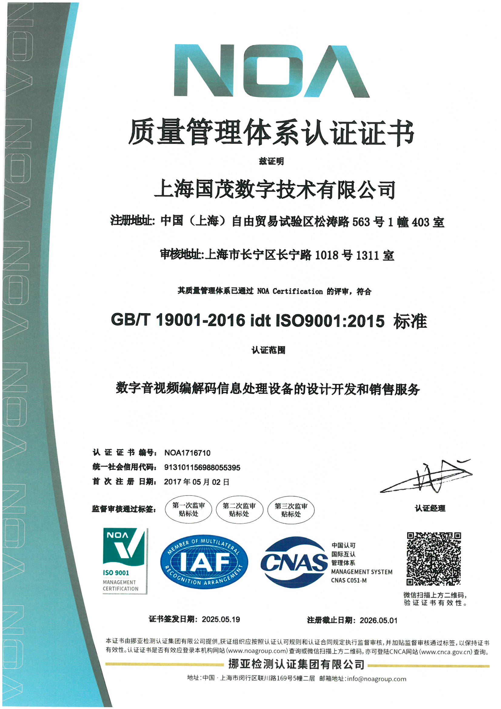 上海國茂數(shù)字技術有限公司連續(xù)14年通過ISO:9001審核.