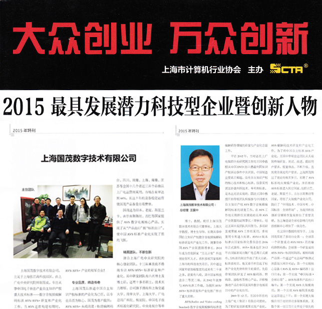 上海國茂數(shù)字技術(shù)有限公司在此次大會上被授予“2015最具發(fā)展?jié)摿萍夹推髽I(yè)”,同時公司董事長王國中博士獲得2015年度上海市計算機(jī)行業(yè)創(chuàng)新人物”榮譽(yù)稱號。并在計算機(jī)行業(yè)協(xié)會特刊大篇幅著重介紹。